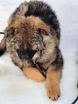 Introducing, September's Sapphire Princess. Born 11/23/21 she is the daughter of Multititled 8X best in Show Winner May's Emerald Princess and Multititled Platnium Champion Hercules. She is an F4 Generation King Shepherd and just a beauty.. Still young but has all the amazing qualities we are looking for in a King , Beautiful head and muzzle, large bone, straight topline and a gorgeous thick coat. Hopefully she will carry on the Champion legacy of her parents.